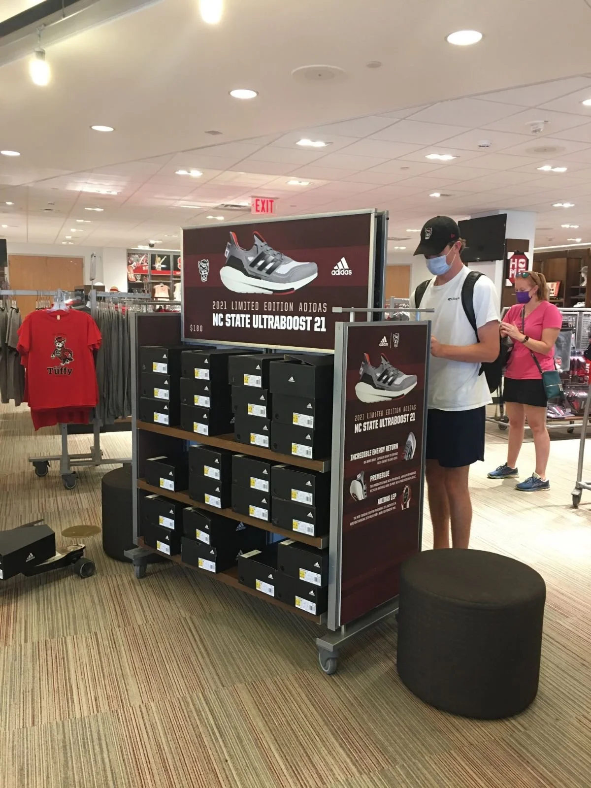 The Adidas Ultra Boost 2021 NCAA “NC State” running shoes were released in August 2021, and were sold for a limited time at Wolfpack Outfitters. I worked with Taylor Wood to develop the following promotional materials for the store’s release of the shoes.